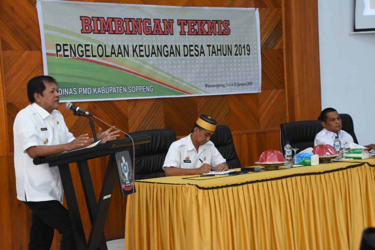 Di depan para kepala desa, Bupati Soppeng menjelaskan bahwa Bimtek ini sangat penting dan strategis, sebab dengan adanya Dana Desa Pengelolaan keuangan desa harus sesuai dengan peraturan yang berlaku supaya terhindar masalah di kemudian hari.